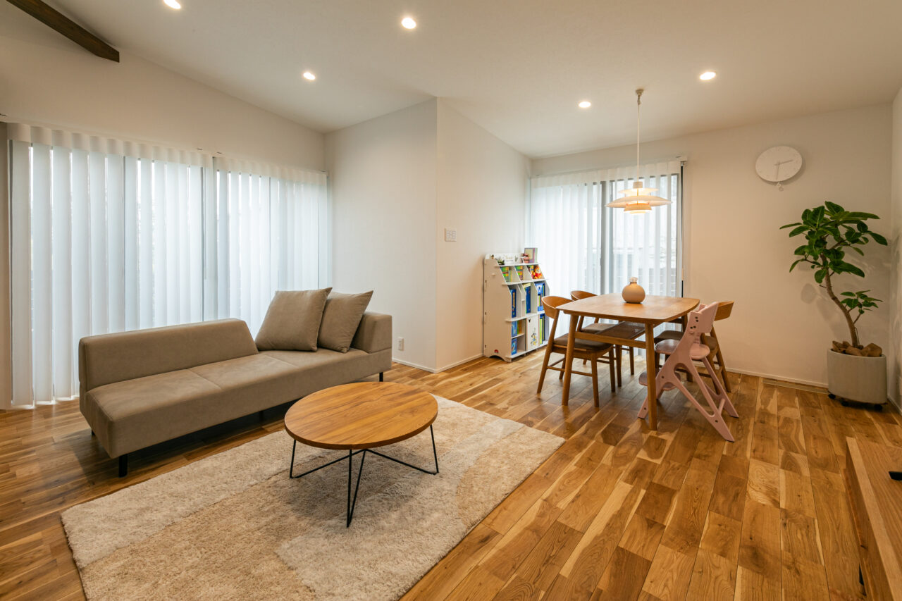 無垢材の床や木製家具、観葉植物を取り入れることで、