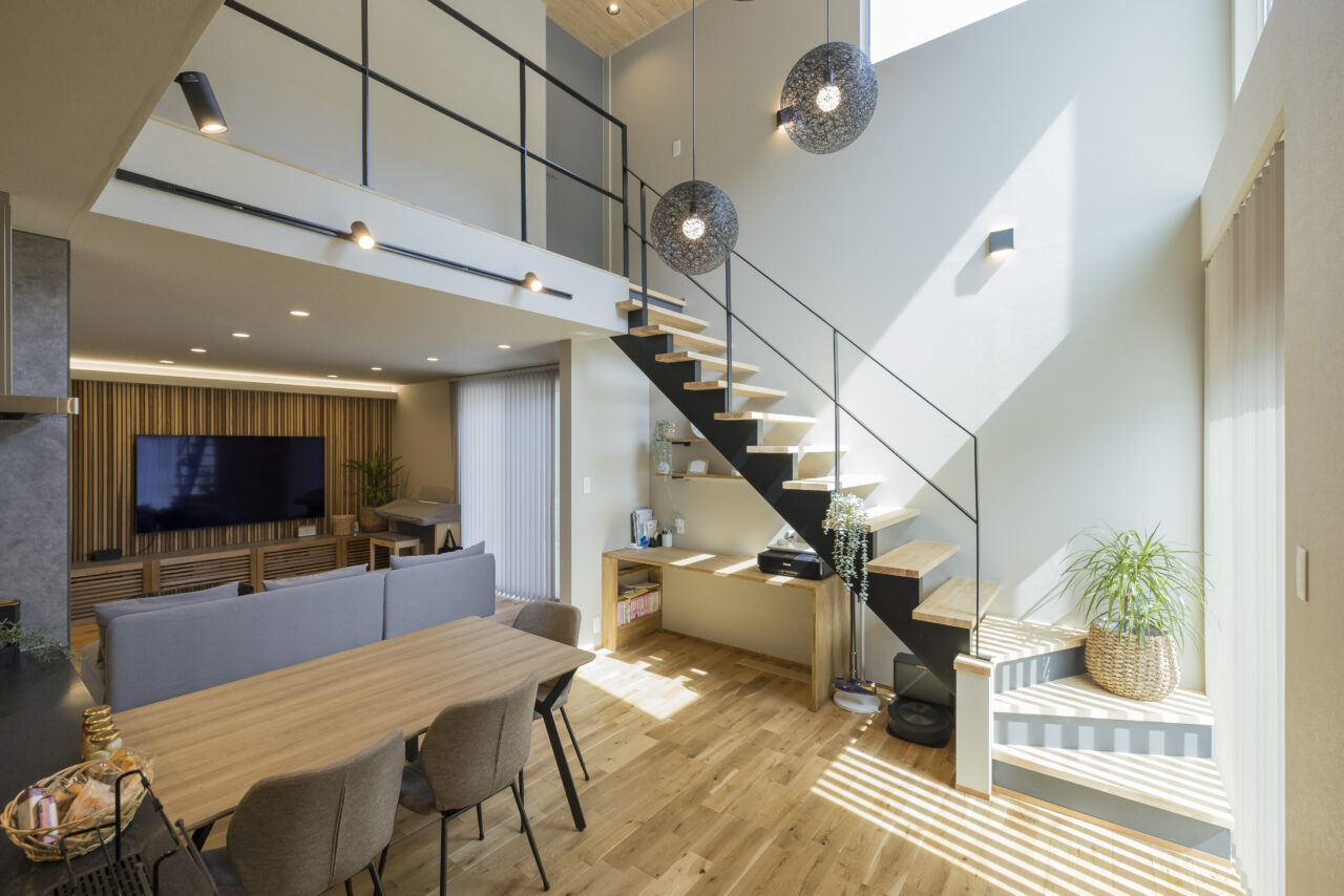 吹き抜けを取り入れることで、視線が抜けて広がりを感じられる空間になります。