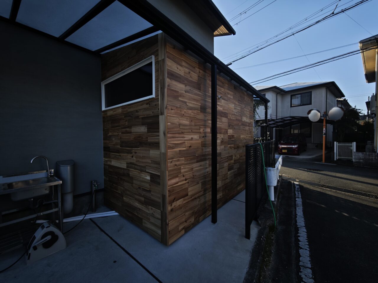 外壁にはアカシア材を貼り、既存の建物と少し違う表情になった。