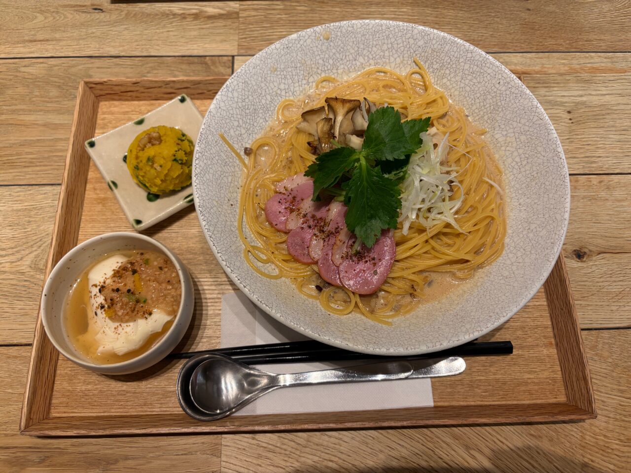 出汁をベースにした、日本らしいパスタが楽しめるところです。