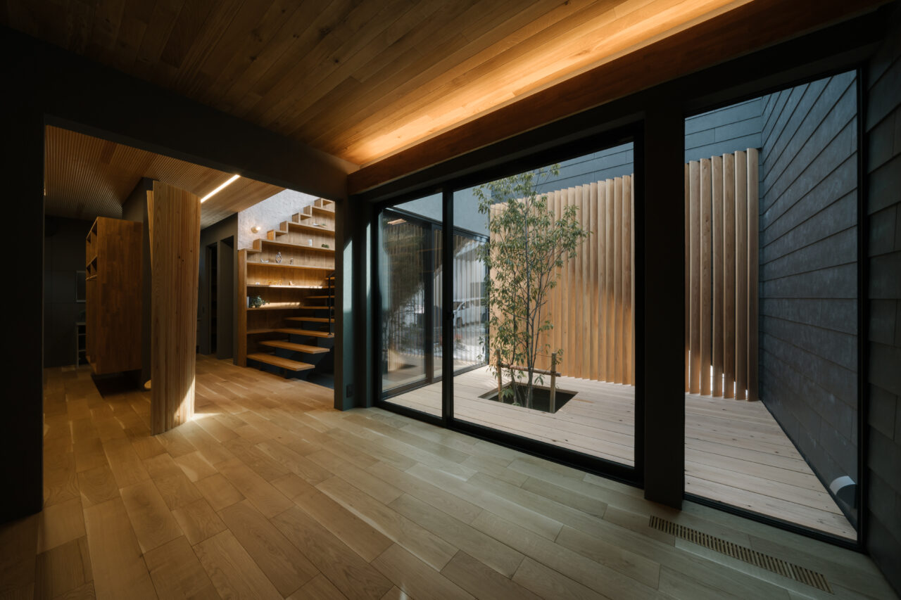 玄関も内部側に配置することで、
